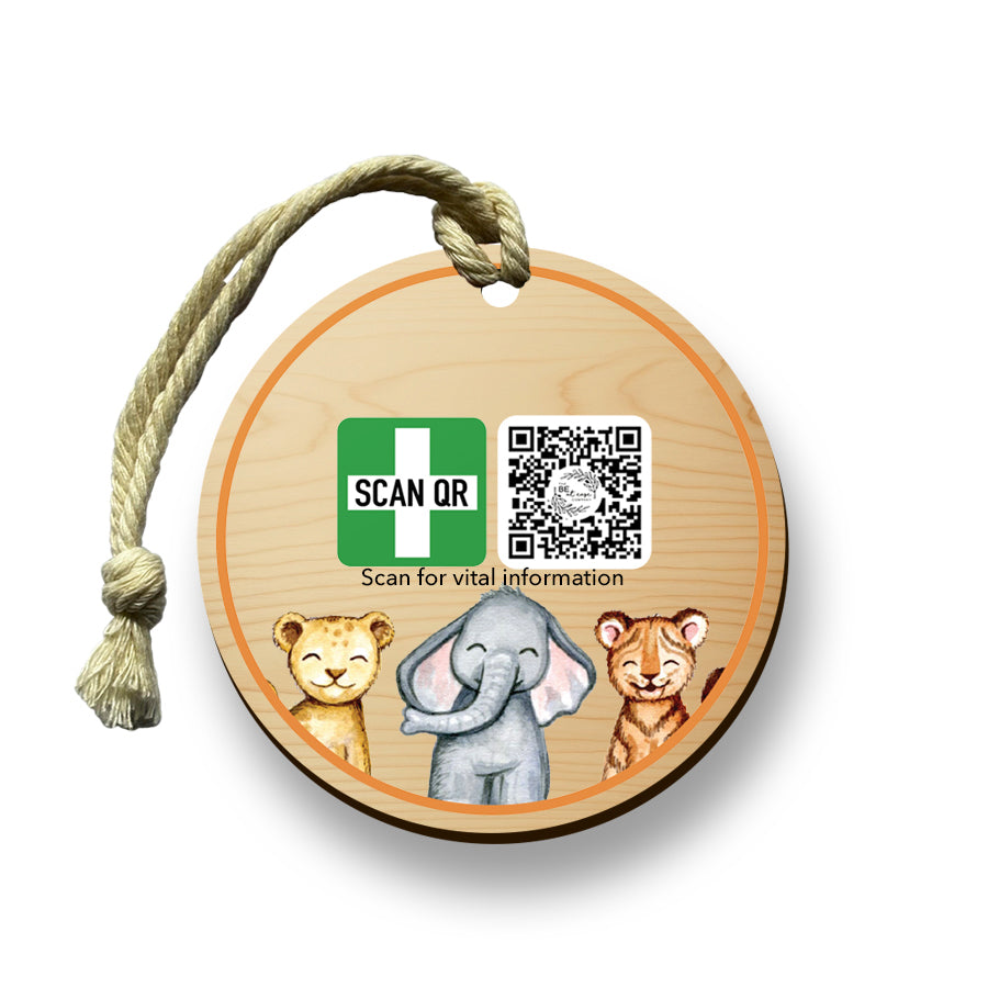 Practical, versatile, and sustainable, this timber safety tag provides peace of mind by keeping crucial health details bold, clear, and accessible at a glance.